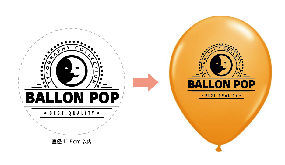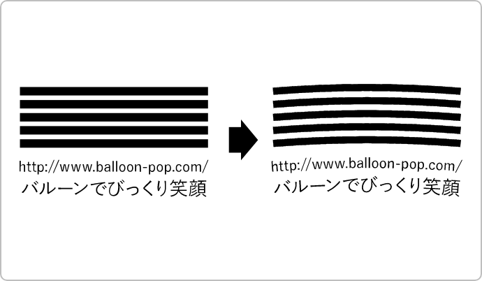 風船は円形にふくらむため、データの時と比べ、印刷後は若干カーブして見えることがあります。