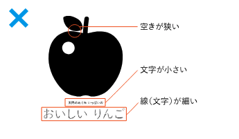 - 文字が小さいと、潰れて読めなくなってしまう原因となります。原寸で読めるサイズに調整し、特に画数の多い漢字などはご注意ください。