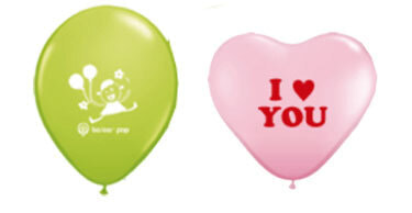 風船は丸型・ハート型の2種類。丸型は両面印刷もOKです。色のバリエーションも数多く取り揃えております。
