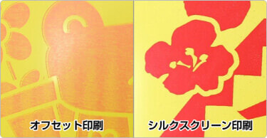(写真左:オフセット印刷/右:シルクスクリーン印刷)