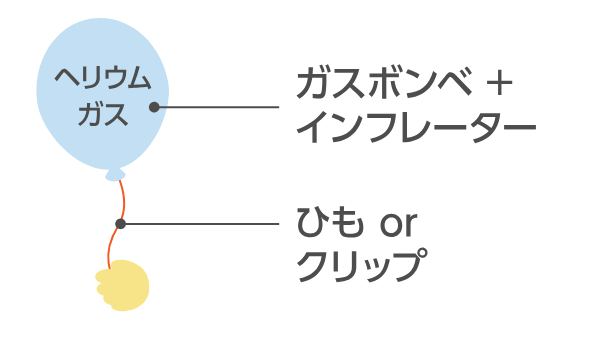ヘリウムガスで膨らませる(浮かせる)場合